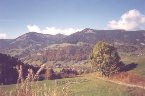 Enfin, une vue prise depuis le chemin montant du hameau de Cassioz jusqu'à Rochebrune qui montre dans le coin haut droit le Christomet et le sommet du massif du Jaillet. |